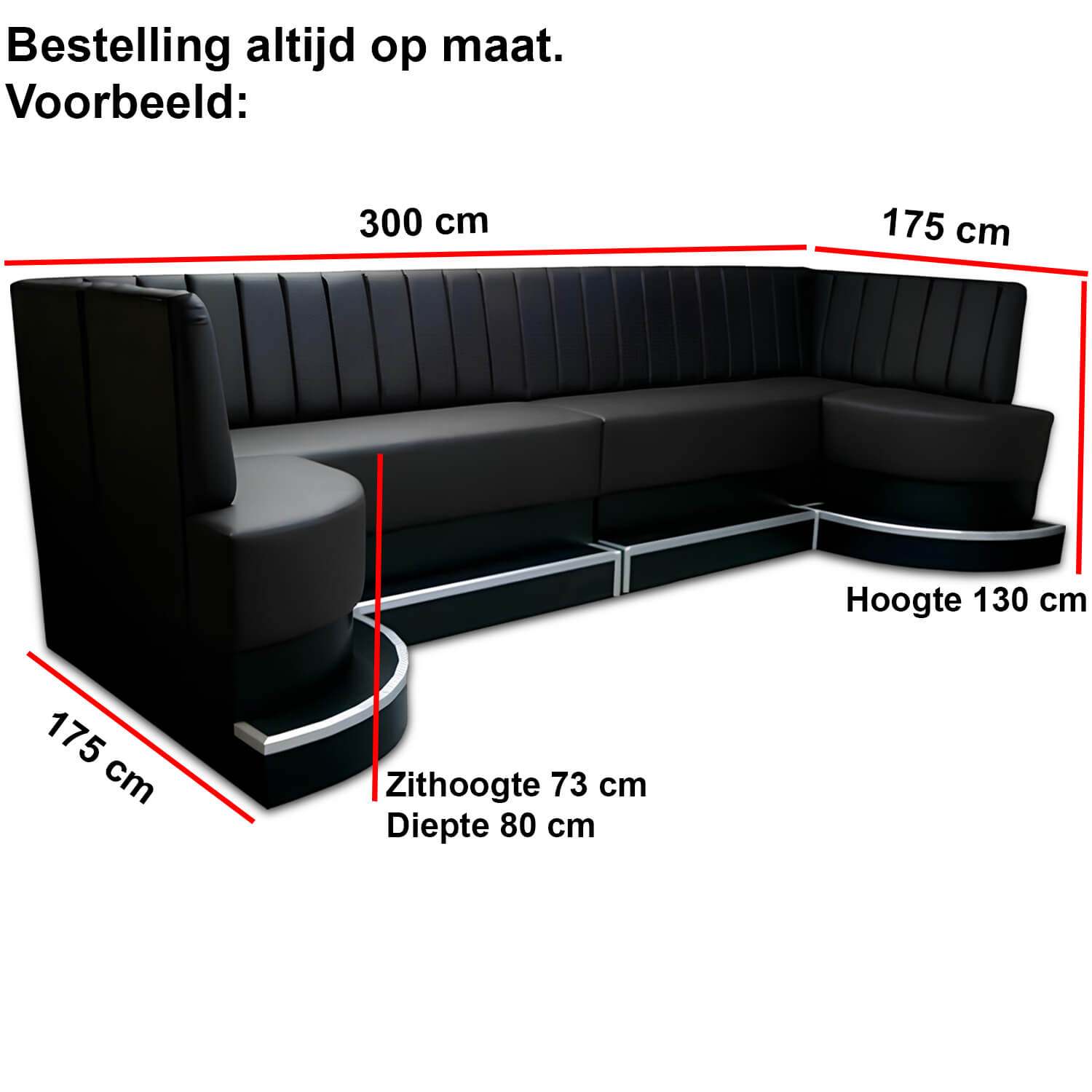De American Up bank heeft een hoge uitrusting. Vanwege zijn hoge uitrusting is hij ideaal om een VIP ruimte te creëren in uw bar, discotheek of restaurant. Bekleed met eenvoudig te onderhouden kunstleer van topkwaliteit. De bank kan gemaakt worden in een grote variëteit van kunstleer. De maten kunnen op verzoek gewijzigd worden met stof- en kleuropties, rekening houdend dat de prijzen voor maatwerk variabel zijn.