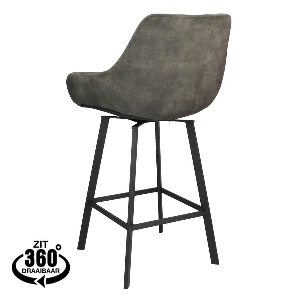 vanafHoreca Metalen Barstoel – ZADIG – Vintage Microvezel Anthraciet