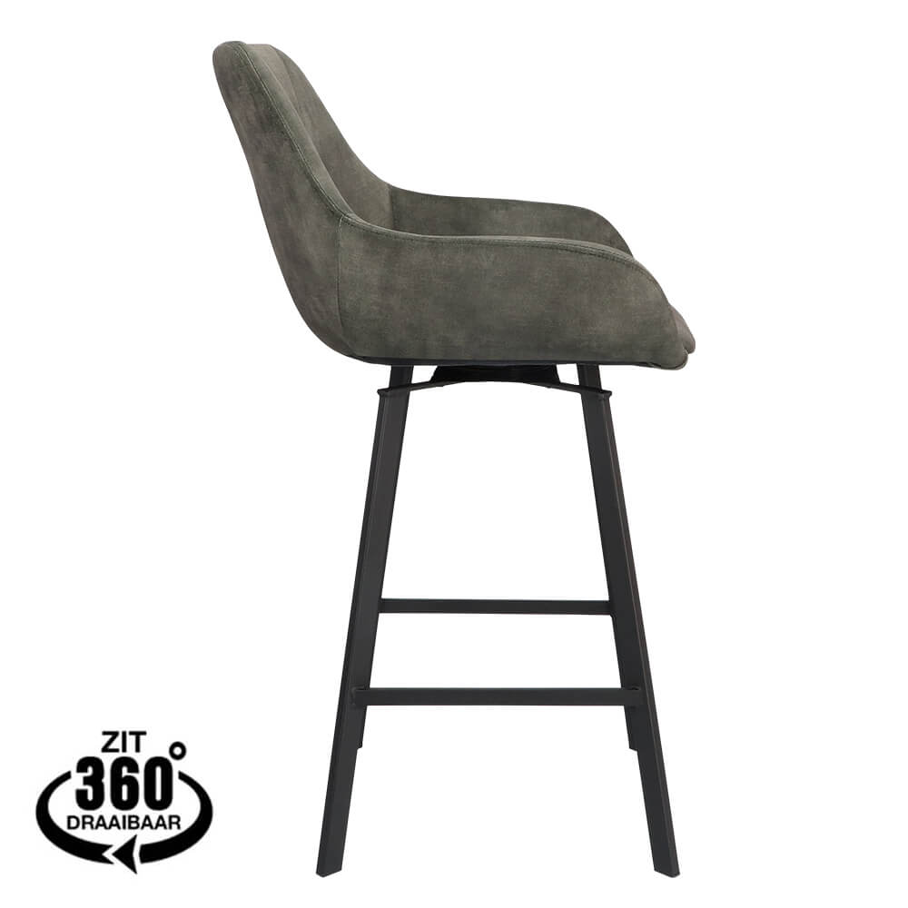 Breng verfijning en veelzijdigheid in uw interieur met deze fluwelen barstoel. Verkrijgbaar in stijlvolle verschillende kleuren. Het zachte velvet bekleding biedt een luxe uitstraling en ultiem comfort terwijl het strakke zwarte metalen frame zorgt voor een moderne, industriële look. De 360° draaifunctie maakt de barstoel extra praktisch. Ideaal voor dynamische horecagelegenheden waar flexibiliteit en stijl samenkomen.