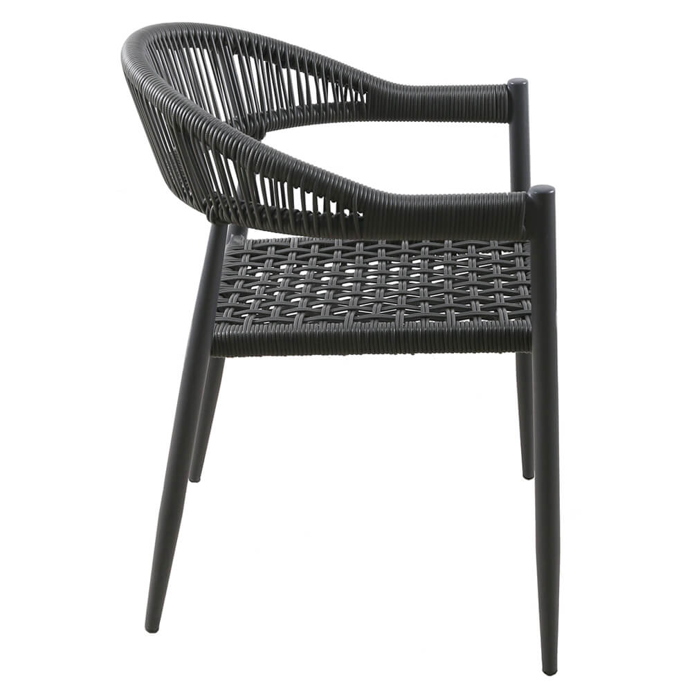 vanafHoreca Stapelbare Terras Armstoel – VENETIE – Zwart Aluminium/Rattan
